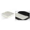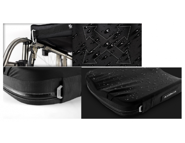As formas hexagonais exclusivas de espuma na parte posterior, reduzem a tensão superficial e aumentam o envolvimento ao redor dos ísquios e do cóccix. Ao utilizar apenas uma capa plissada, a tensão superficial é reduzida, proporcionando melhor imersão na forma anatômica.