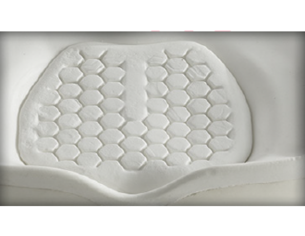 A almofada Axiom SP Visco foi projetada para proporcionar maior imersão, premitindo que os trocânteres suportem uma carga efetiva. Isso melhora a estabilidade ao alargar a base de suporte e reduz a carga que o tecido que suporta as Tuberosidades Isquiáticas deve suportar. Uma seção de espuma viscolástica especialmente projetada se deforma para imergir e envolver as tuberosidades isquiáticas.