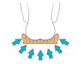 • Almofada possui dois tamanhos de cilindros de espuma. Os cilindros externos são mais altos, enquanto os abaixo das nádegas, cóccix e pernas são mais baixos, criando uma camada secundária de proteção da pele com formato anatômico. Isto aumenta a estabilidade e facilita as transferências.