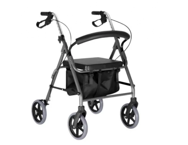 | Especificação Técnica | Suporta até 100kg Tamanho único (usuários com altura entre 1,55m e 1,85 m) FIXO COM RODAS - Freios com travamento das rodas traseiras Acompanha Cesto Porta Objetos Para uso em ambientes Internos e Externos Assento Estofado com Encosto, para períodos curto |