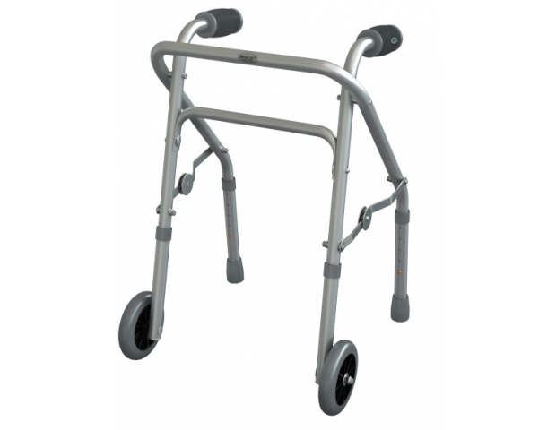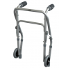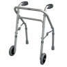Rodas nos tubos traseiros que facilitam o caminhar, pois permitem empurrar o andador sem retirá-lo totalmente do chão, o que também proporciona menor esforço e gasto energético durante a caminhada.