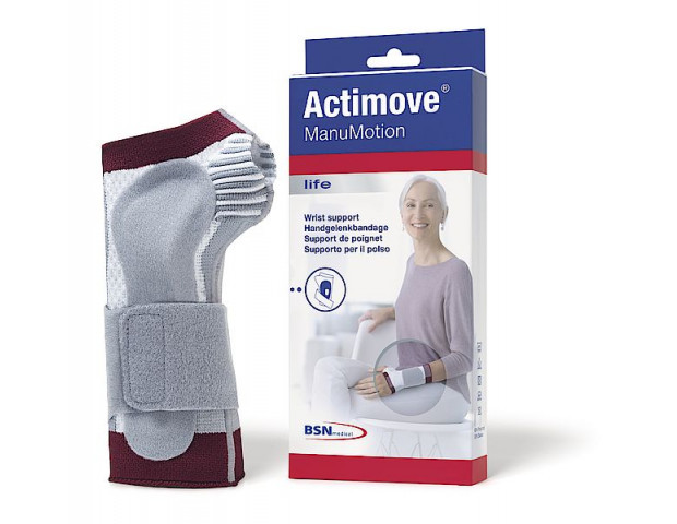 O Actimove® ManuMotion é composto de materiais livres de látex e revestidos com forro felpudo que garante conforto máximo. A combinação altamente absorvente de poliamida e elastano dá um toque especial e macio e mantém a pele seca, livre de suor. A perfeita tecnologia de fusão usada para integrar a almofada de compressão elimina pontos de pressão e irritação.