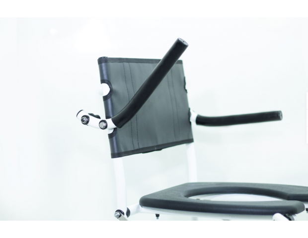 A H1 é a cadeira de banho mais completa e versátil. Com 4 rodas pequenas de série que podem ser usadas para passar em portas mais estreitas, ou colocando as rodas grandes para auto-propulsão. A estrutura tem um exclusivo sistema de fechamento frontal e as rodas desmontáveis o que deixa a H1 muito compacta para guardar em pequenos locais.