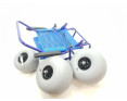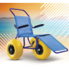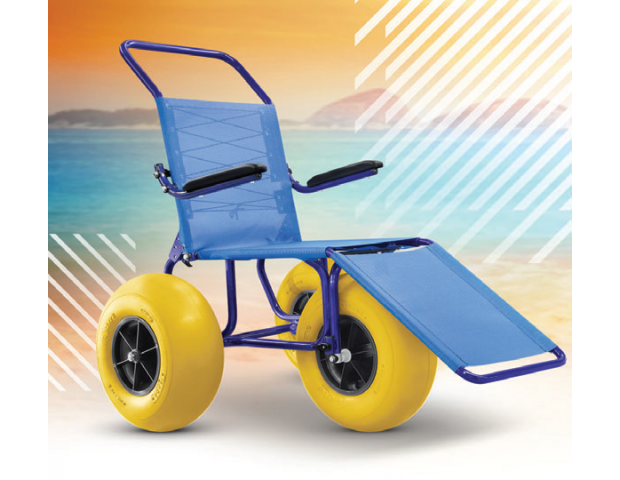 Pode ser utilizada na areia e na água. Suas rodas de perfil largo evitam que a cadeira atole e permitem realizar movimentos fáceis e leves.
