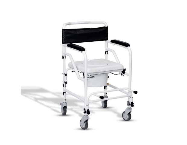 Possui as 4 rodízios pequenos para não ocupar muito espaço nos ambientes. O assento é extremamente confortável e impermeável. Ainda possui um coletor dando maior comodidade em sua utilização nos diversos ambientes.