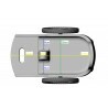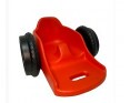 Tem sua maior parte Injetada ou moldada em polímero de poliuretano onde consiste o assento com laterais de igual tamanho, encosto do tronco, uma estrutura elevada que fica entre as pernas da criança assim garantindo o posicionamento e brecando o quadril da criança, parte frontal onde abriga os pés da criança onde fica localizada a alça de manejo para transporte da cadeira. Em seu interior tem uma alma de aço aonde fixa as rodas, rodízios e roldanas.