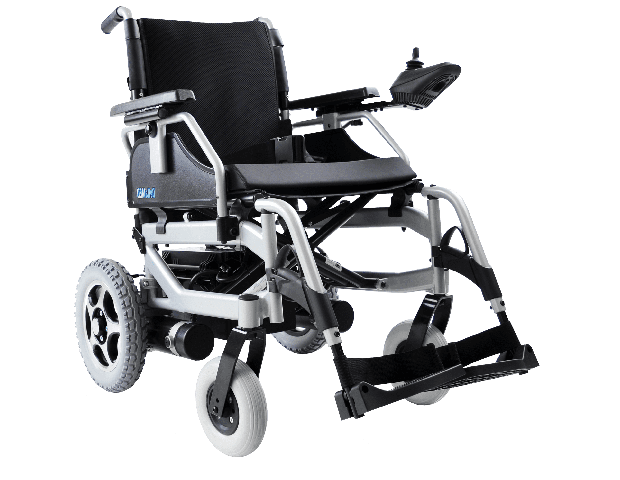 A cadeira motorizada D1000 Dellamed possui estrutura em alumínio e duplo X que garante leveza e resistência. Com bateria recarregável e removível.