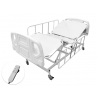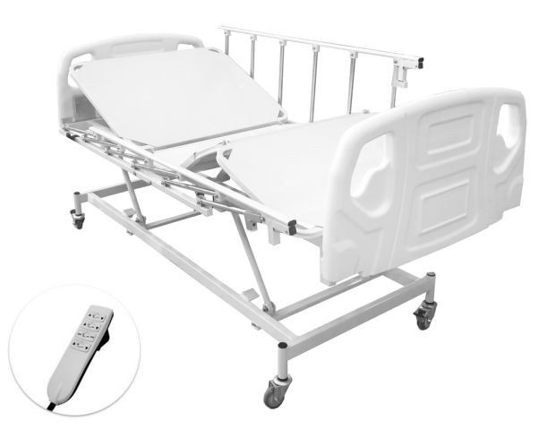 DESCRITIVO: Cama Fowler Cabeceira e peseira removíveis produzida em PEAD (Polietileno de Alta Densidade) 100% virgem de fácil limpeza e esterilização de alta durabilidade e robustez. Estrutura do leito construído em longarinas de Aço ASTM A36 de 3mm perfilados em U. Base tubular de 1.1\4” x 1,5 mm com pés recuados. Estrado articulado em chapa de aço ASTM A36 espessura de 1mm. Grades em Aço ASTM A36 de alta resistência, com regulagem de altura através de manípulo. Movimentos Fowler, Semi-Fowler, Sentado, Flexão de Pernas, Vascular, Cardíaco e Elevação de Leito acionados por atuador elétrico duplo, blindado e de tecnologia alemã atuando em 110 / 220 volts (bivolt). Tratada com sistema antiferruginoso por fosfatização, possuí acabamento em pintura eletrostática a pó com resina epóxi-poliéster, polimerizado em estufa, de excelente resistência química e mecânica. Acompanha Rodízios de 3” DIM, com freio de dupla ação em diagonal.