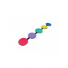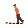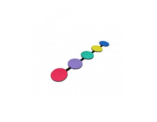 Composição: Conjunto de bases que sustentam 5 bolachas circulares. E madeira revestidas com borracha sintética e eva.