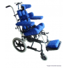 DESCRITIVO CHASSIS CANGURU: Estrutura de Dura Alumínio de liga E 20, dobrável em X, com rodas dianteiras Soft Ride 6´´ PU, rodas traseiras (maciças ou infláveis - conforme remessa) (amortecimento regulável para diversos tipos de pisos), 12” 16” 20 ou 24” removíveis (quick release). Pintura eletrostática epóxi. Duas regulagens do distanciamento ou aproximação das rodas traseiras em relação ao centro de gravidade da cadeira. Pedais de apoio, com revestimento de PU para transferências em ruas. Freios bilaterais. Receptor duplo AT para o sistema Compac-Recline.