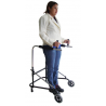 Andador com ajuste de inclinação de altura, que se posiciona posteriormente ao corpo do utilizador, com duas rodas à frente e duas sapatas de descanso na parte traseira. Tem por objetivo a equilibração do corpo, com o auxílio de manoplas com ajuste de ângulo para maior ou menor abdução de membros superiores.