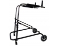 Andador com ajuste de inclinação de altura, que se posiciona posteriormente ao corpo do utilizador, com duas rodas à frente e duas sapatas de descanso na parte traseira. Tem por objetivo a equilibração do corpo, com o auxílio de manoplas com ajuste de ângulo para maior ou menor abdução de membros superiores.