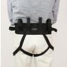 Cinto de Transferência com Perneira · Descrição: Fácil e simples de usar, o Cinto de Transferência , é um importante aliado no momento de transferir o paciente da cadeira de rodas para a cama, carro ou sofá, além de proporcionar maior segurança em atividades de fisioterapia ou de passeio, evitando acidentes embaraçosos ou quedas que podem ser prejudiciais ao paciente. Dotado de 4 alças verticais na parte de trás e duas alças nas laterais, permitindo que o cuidador ou familiar possa encontrar a melhor posição para a movimentar o paciente. Alças extras integradas ao corpo do cinto com duas presilhas de segurança, permitem que elas sejam presas ao redor das pernas do paciente, distribuindo o peso de maneira uniforme e evitando que o cinto suba no momento da movimentação. De fácil ajuste e com largura de 10 cm, esse produto é indicado para pessoas com circunferência de cintura de até 120 centímetros. Produto ideal para ser utilizado em conjunto com o cinto de transferência.( não acompanha ) Sendo o sem perneira indicado para usar no cuidador ou familiar e com perneira no paciente. Lavável na máquina de lavar roupas Tamanho único