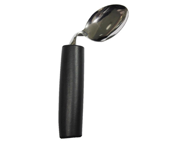 Colher curvada com cabo engrossado – DESTRO · Descrição: O uso eficiente de talheres é essencial para a independência no ato de comer. Talheres adaptados podem ajudar as pessoas com dificuldades, como: aderência reduzida, tremor ou falta de controle muscular, uso de apenas uma mão, movimentos restritos e fraqueza nos braços e ombros. Desenvolvido com um cabo emborrachado, anatômico, com ampla aderência, aço inoxidável e curvado, estes talheres são ideias para pessoas com artrite, túnel de carpo, tremores, ou perda de força nas mãos devido a problemas neurológicos, proporcionando maior controle e estabilidade ao comer. *Permitida lavagem na máquina de lavar louças. * Esse produto é destinado a indivíduos destros.
