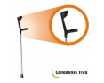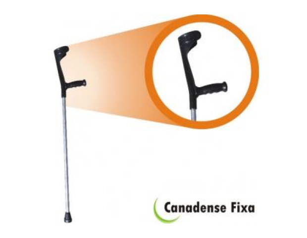 Muleta tipo Canadense marca ALO, fabricada com estrutura tubular em alumínio anodizado de alta resistência, possui regulagem de altura entre 1,00m e 1,20m.