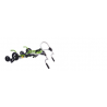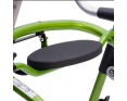 Assento rebativel; Sling -cinto pélvico suspenso; Suporte combinado- pélvico/glúteo, ajustavel em 3 dimensões; bloqueio de giro para roda dianteira (par) e Cesta pequena, preta.