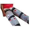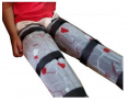 Órtese para inibir padrão flexor, em tecido almofadado, com barbatanas em PVC cilíndrico.
