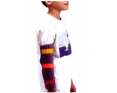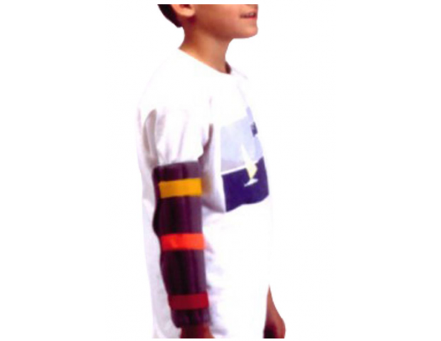 Órtese para inibir padrão flexor, em tecido almofadado, com barbatanas em PVC cilíndrico.