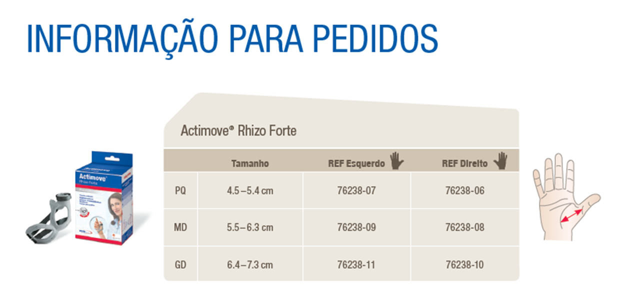Órtese imobilizadora do polegar indicada para o tratamento de condições dolorosas e processos degenerativos da primeira articulação do polegar (ex.: rizartrose), artrite reumatoide, lesões do ligamento colateral ulnar (LCU) da articulação metacarpofalangeana (lesão do esquiador), lesões dos tecidos moles (torções), instabilidades ligamentares e imobilização pós-operatória.