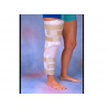 Características: Tecido e espuma com barbatanas de duralumínio, cinta elástica para compressão do joelho, fecho em velcro.