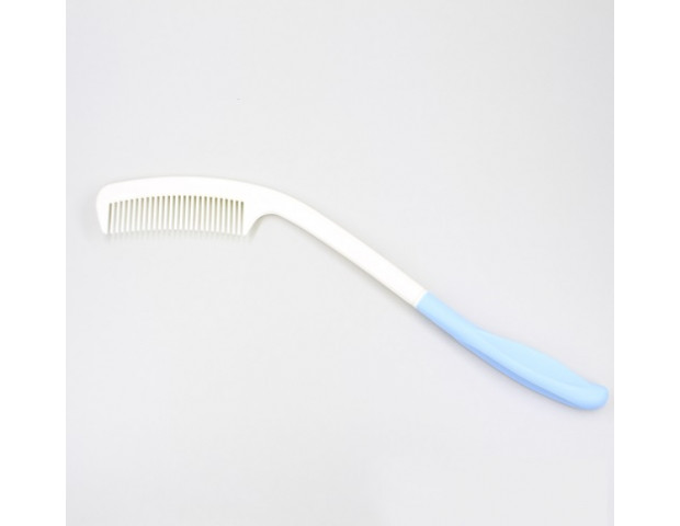Pente para Cabelos Cabo Longo · Descrição: Projetado para pessoas com mobilidade limitada nos membros superiores como artrite ou dor nos ombros, mãos e braços, o Pente de Cabelo Cabo Longo, proporciona maior independência na atividade de pentear os cabelos. O produto tem 38 centímetros de comprimento em formato curvo, permitindo aos usuários alcançar toda a cabeça com o mínimo esforço dos braços, penteando o cabelo de frente para trás. Cabo com desenho triangular, proporcionando empunhadura ergonômica e textura antiderrapante. Produzido em material plástico de alta qualidade, o produto é leve e durável