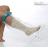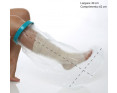 Protetor impermeável para pernas · Descrição: Projetado para proporcionar total proteção para curativos, gessos ou outro tipo de bandagem, o Protetor Impermeável para as pernas, é ideal para manter seus curativos secos durante o banho. De fácil colocação, produzido em material macio e confortável, seu anel de retenção fabricado em silicone, permite que o produto seja acomodado de maneira simples e rápida, mantendo a circulação sanguínea. Para colocar o produto, estique com cuidado a vedação em silicone e ajuste sobre a lesão ou curativo, não havendo a necessidade de fitas ou tiras de fixação. Tenha cautela ao retirar o protetor após o banho, evitando encostar na lesão ou curativo. Este produto não deve ser utilizado imerso em água como piscinas ou banheira. Produto direcionado a pessoas com circunferência de coxas entre 30 a 53 centímetros