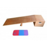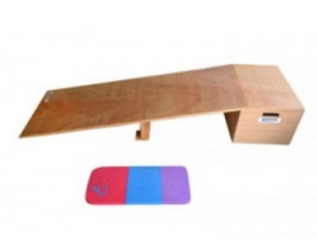 Estrutura de aço que suporta uma base e uma prancha de madeira compensada de 15mm revestida de fórmica e borracha sintética.