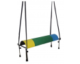 Constituído de uma chapa de aço curva, estruturado internamente por tubos de aço e forrado com eva de 3mm. Possuí 4 pés com ponteiras de borracha. O Sistema é fixado através de duas fitas cabo.