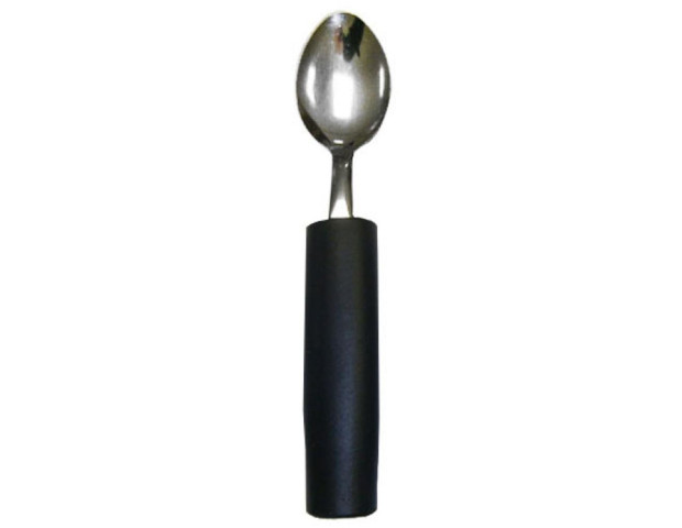 Talher com cabo engrossado – COLHER DE SOBREMESA · Descrição: O uso eficiente de talheres é essencial para a independência no ato de comer. Talheres adaptados podem ajudar as pessoas com dificuldades, como: aderência reduzida, tremor ou falta de controle muscular, uso de apenas uma mão, movimentos restritos e fraqueza nos braços e ombros. Desenvolvido com um cabo emborrachado, anatômico, com ampla aderência e aço inoxidável, estes talheres são ideias para pessoas com artrite, túnel de carpo, tremores, ou perda de força nas mãos devido a problemas neurológicos, proporcionando maior controle e estabilidade ao comer. Ranhuras no corpo do cabo que possui 3,8 centímetros de diâmetro, proporcionam um ajuste confortável para a mão, dando maior independência aos usuários destros. *Permitida lavagem na máquina de lavar louças.