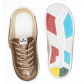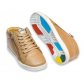Calçado infantil exclusivo para uso de órtese. Produzido com cabedal e forro em couro, proporciona conforto e durabilidade. Por ser um tênis exclusivo para usar com órtese, este modelo não conta com a palmilha de PU (poliuretano). Solado indicativo, feito de borracha termoplástica, que demonstra o tipo de pisada com o desgaste nas áreas determinadas.