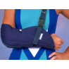 Características: Confeccionada em brim estofado duplo e fecho em velcro bilateral.
